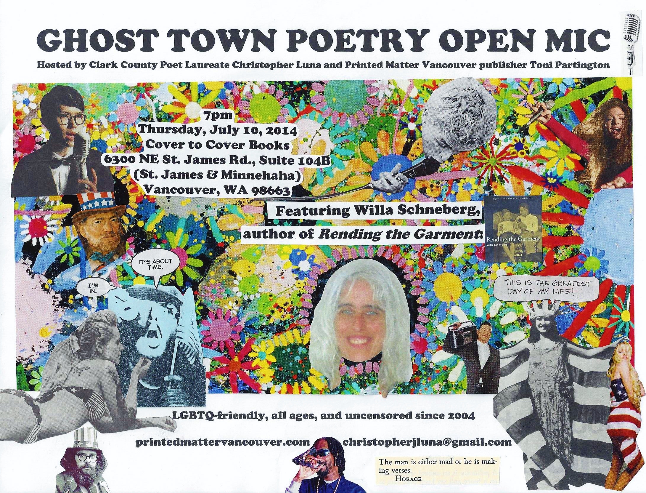 Ghost Town Poetry Open Mic Featuring Willa Schneberg, Thursday, July 10, 2014