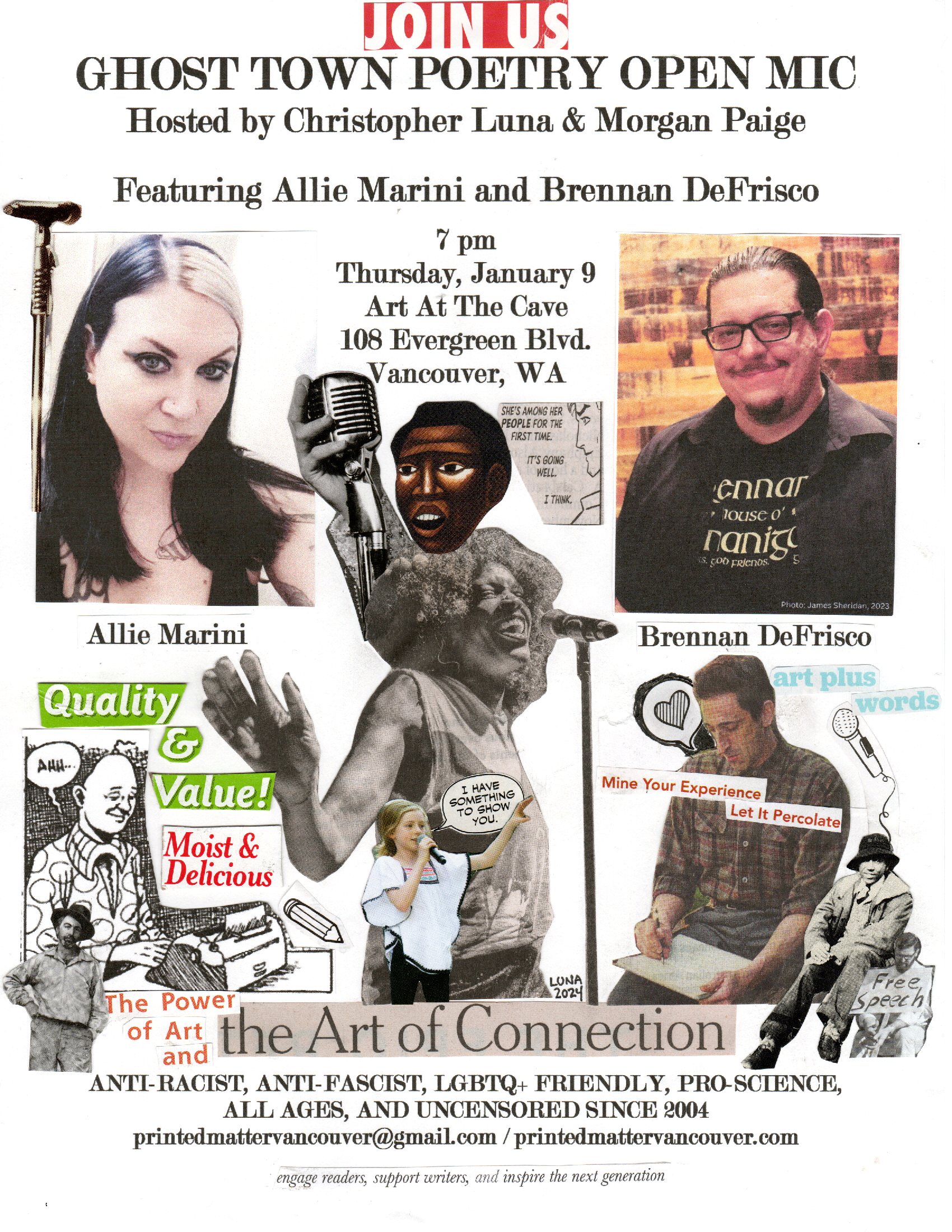 Ghost Town Poetry Open Mic Featuring Allie Marini and Brennan DeFrisco at Art At The Cave January 9, 2025