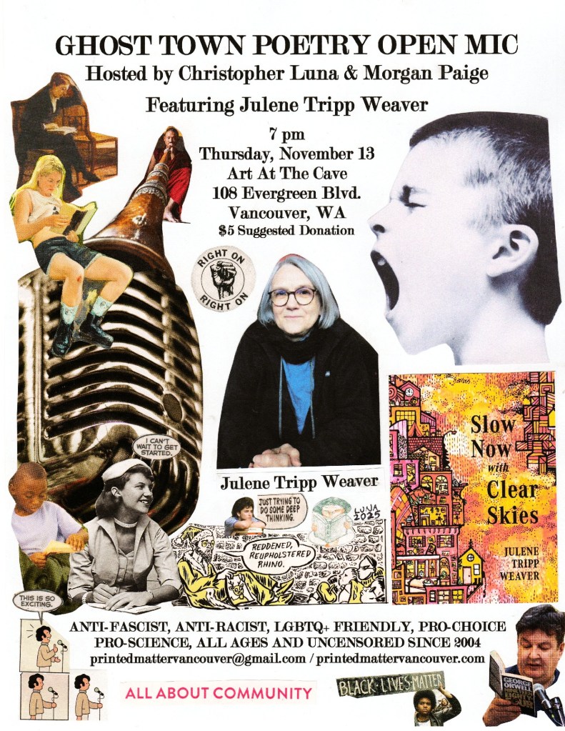 Ghost Town Poetry Open Mic Featuring Julene Tripp Weaver at Art At The Cave November 13, 2025 [UPDATED to include photos]