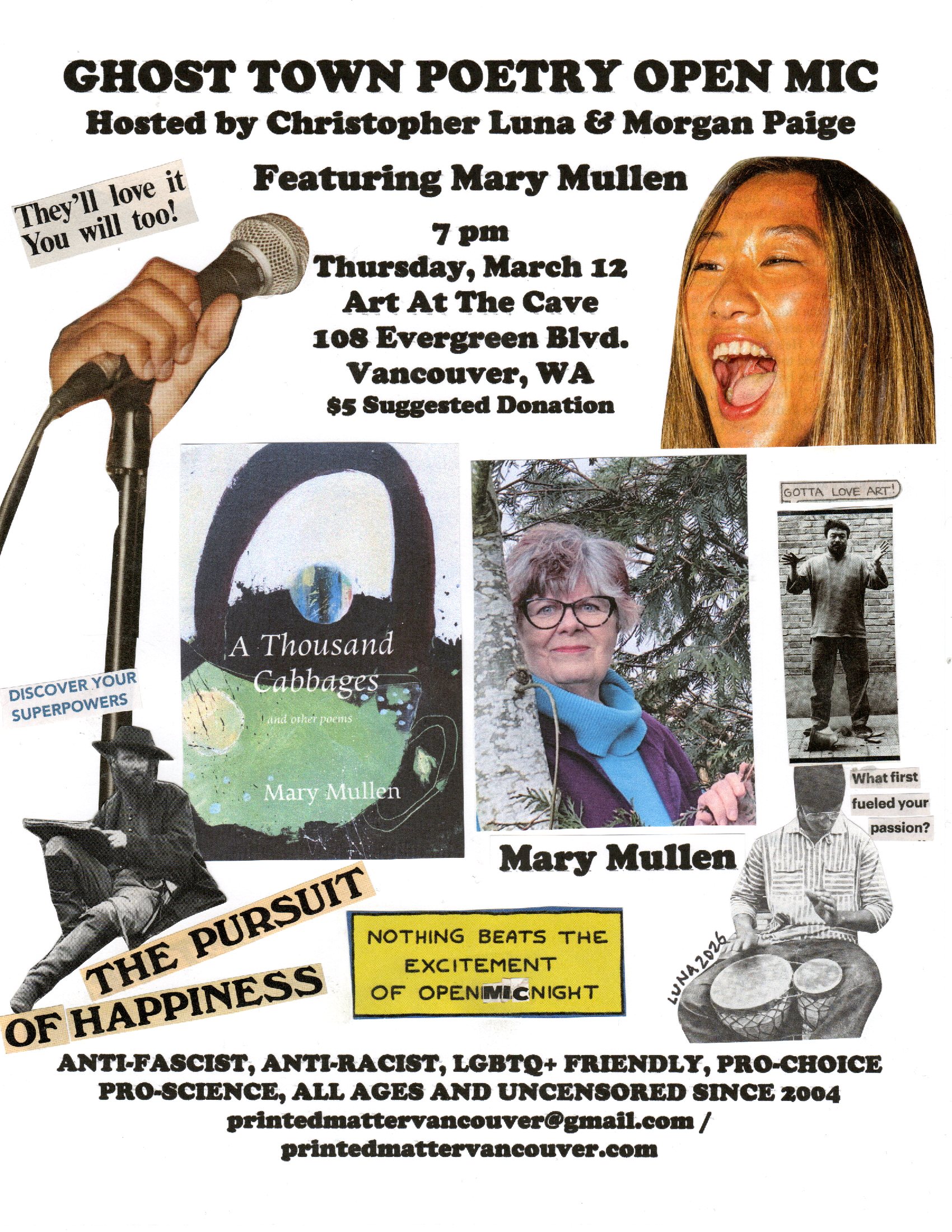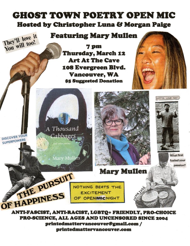 Send an email to printedmattervancouver@gmail.com or visit https://christopherlunapoetry.substack.com/ to register to receive The Work, Christopher Luna’s monthly newsletter featuring news and events for poets in Vancouver, WA, Portland, OR and surrounding areas.