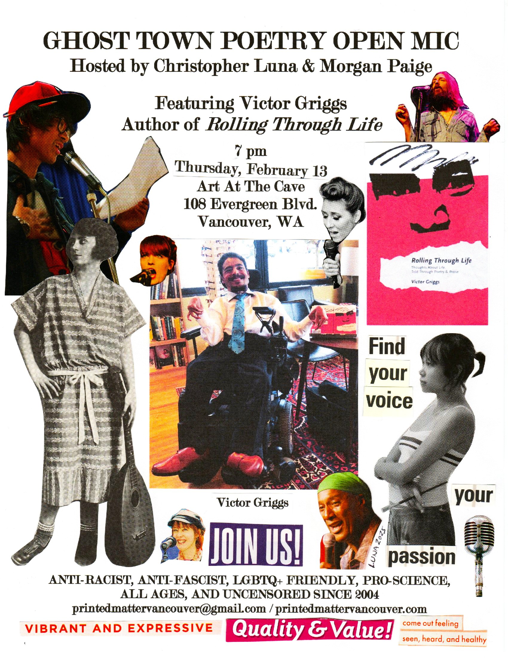 Ghost Town Poetry Open Mic Hosted by Christopher Luna and Toni Lumbrazo Luna of Printed Matter Vancouver Featuring Joannie Stangeland