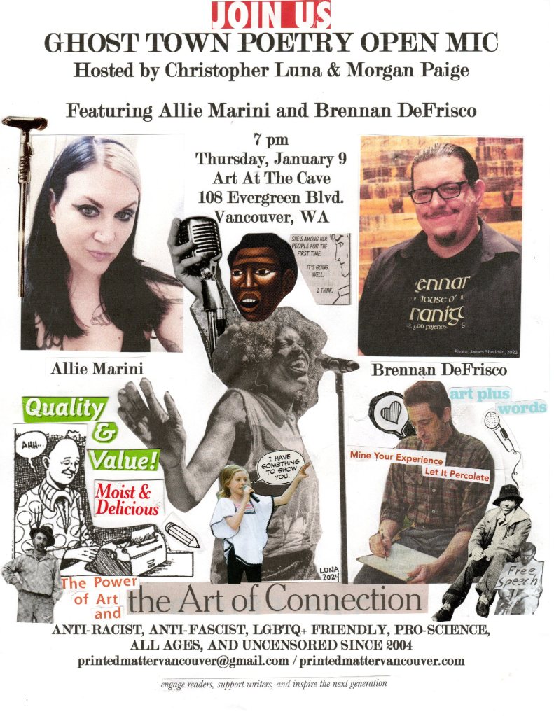 Ghost Town Poetry Open Mic featuring Laura Esther Sciortino plus typewriter poetry at Art At The Cave January 8, 2026