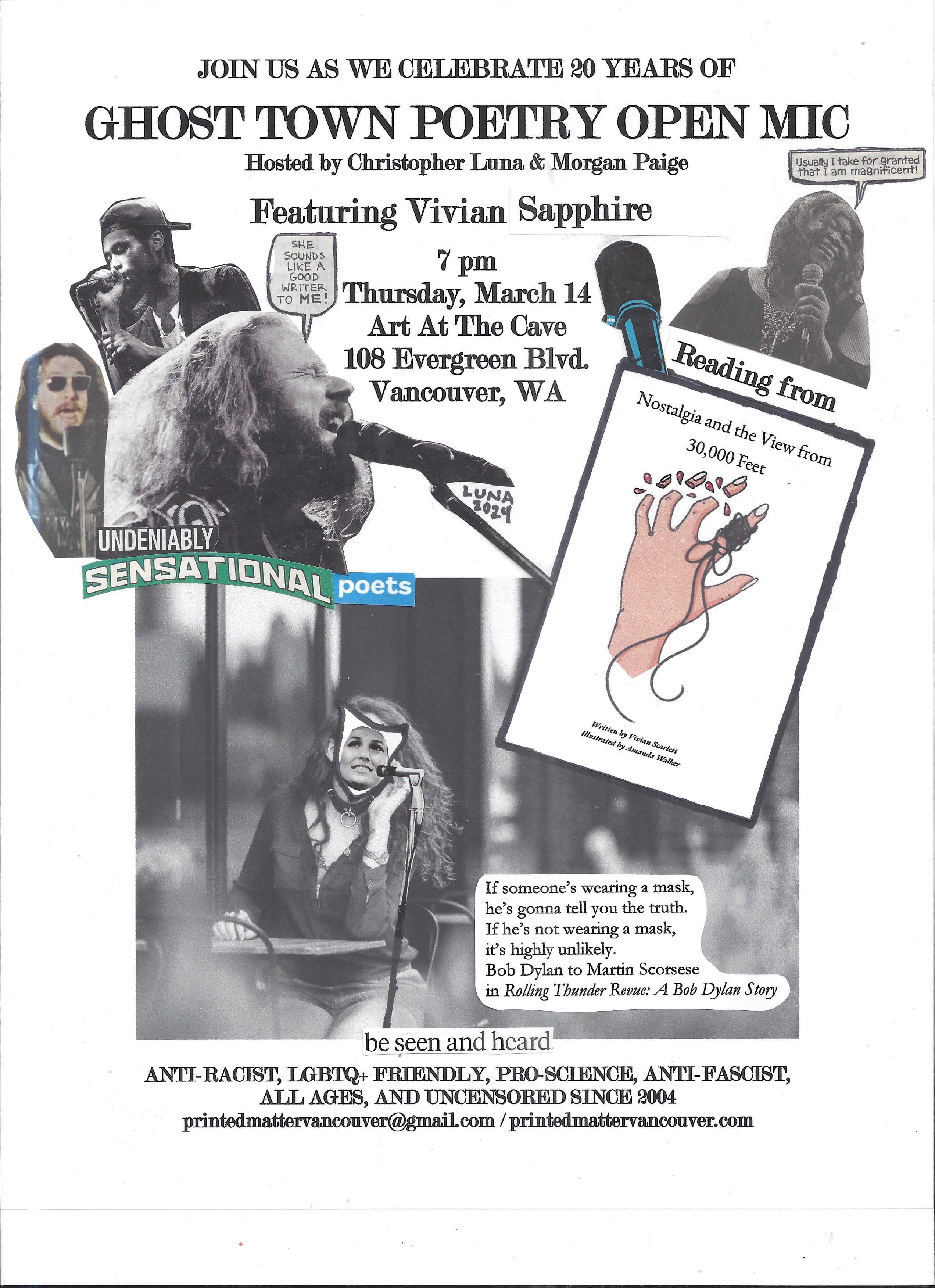 The Ghost Town Poetry community respectfully encourages you to support Niche Wine Bar, whose owner, Leah Jackson, provided a home for the reading series from 2015-2020. Stop by their new location at 900 Washington, Suite 130 Vancouver, WA 98660: https://nichewinebar.com.
