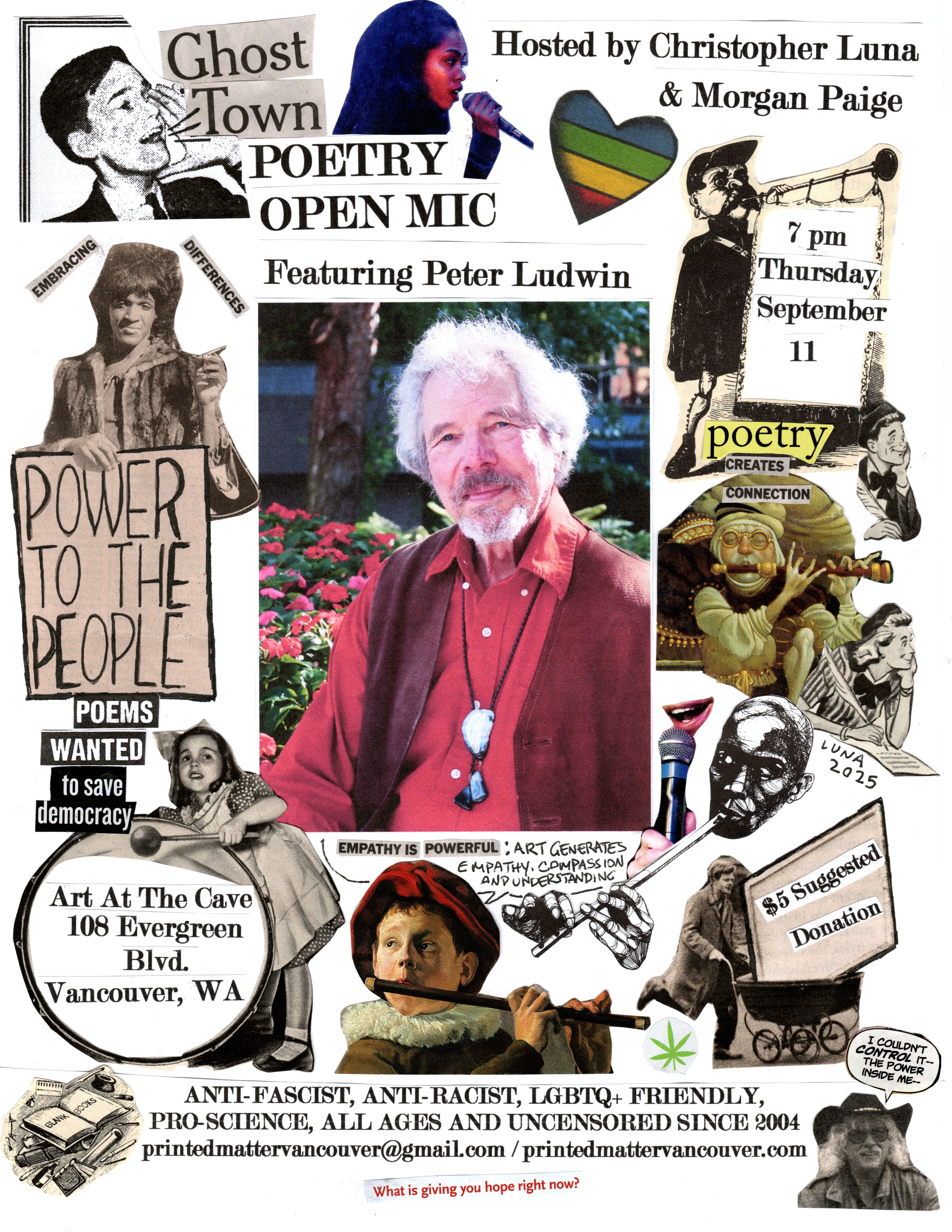 Ghost Town Poetry Open Mic Featuring Peter Ludwin at Art At The Cave on September 11, 2025