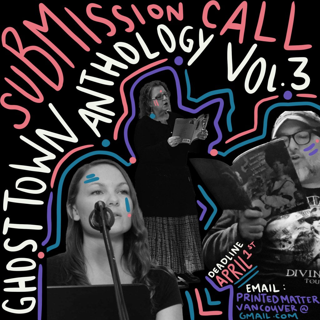 As we prepare to celebrate 20 years of Ghost Town Poetry Open Mic in November, Printed Matter Vancouver and Ghost Town Poetry Open Mic emcees Morgan Paige, Christopher Luna, and Toni Lumbrazo Luna are collecting poems for our third anthology. If you have participated in the series, please send two poems that you have read at the open mic to printedmattervancouver@gmail.com for possible inclusion in the book. We are also looking for high-quality photos and brief descriptions of your most memorable experiences at the reading. Deadline is April 1.